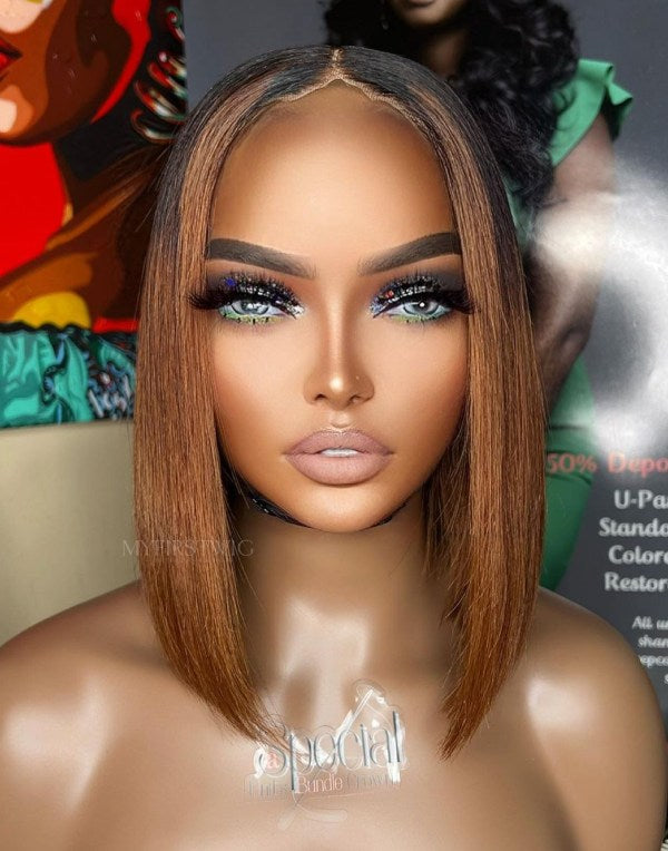ASPECIALUNIT - Glueless Human Hair Lace Front Wigs Ombre Brown Bob Wigs - SPE076