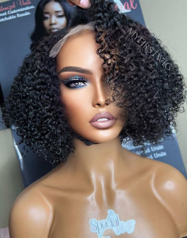 ASPECIALUNIT- Natural Curly Invisible Lace Glueless Human Hair Lace Front Wig- SPE065