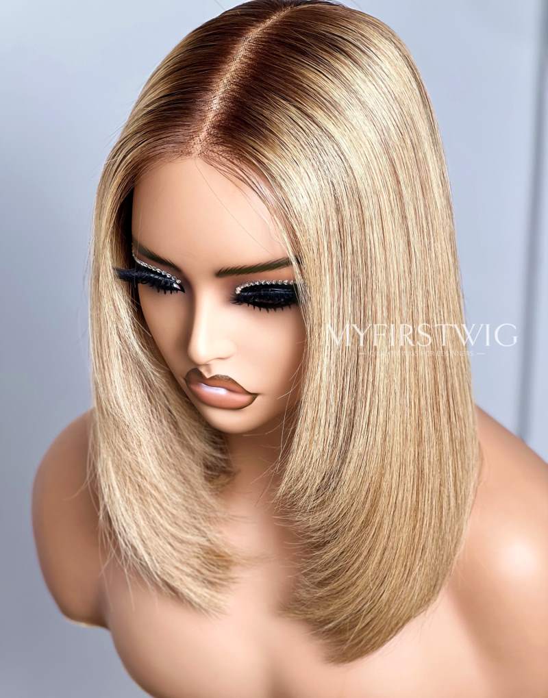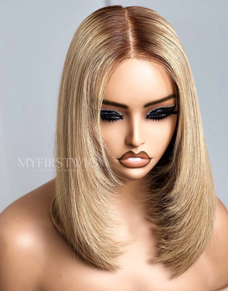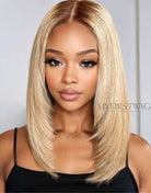 Blonde Ombre Layered Straight Glueless Human Hair Invisible Lace Wig - APRIL004