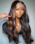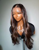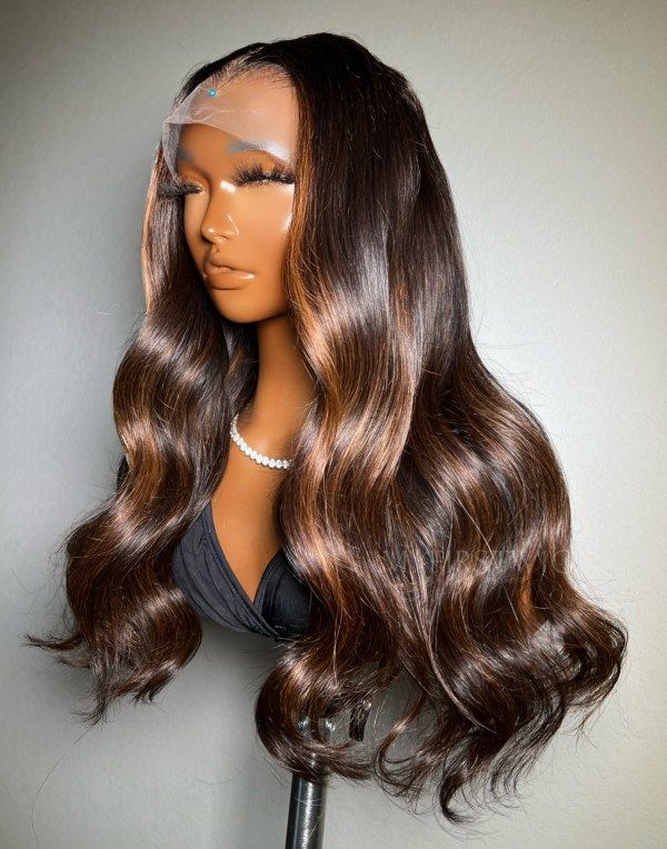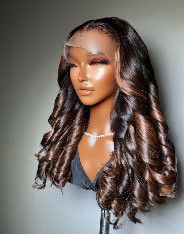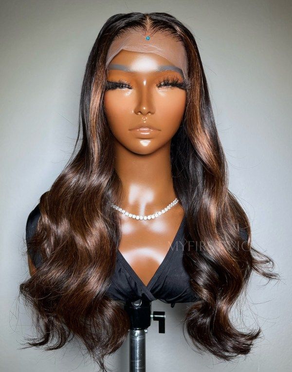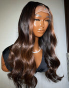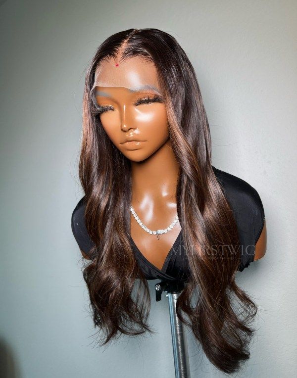 Dainty Secrets - Glueless Human Hair Lace Front Wigs Brown Highlight Wavy Wigs - DTS011