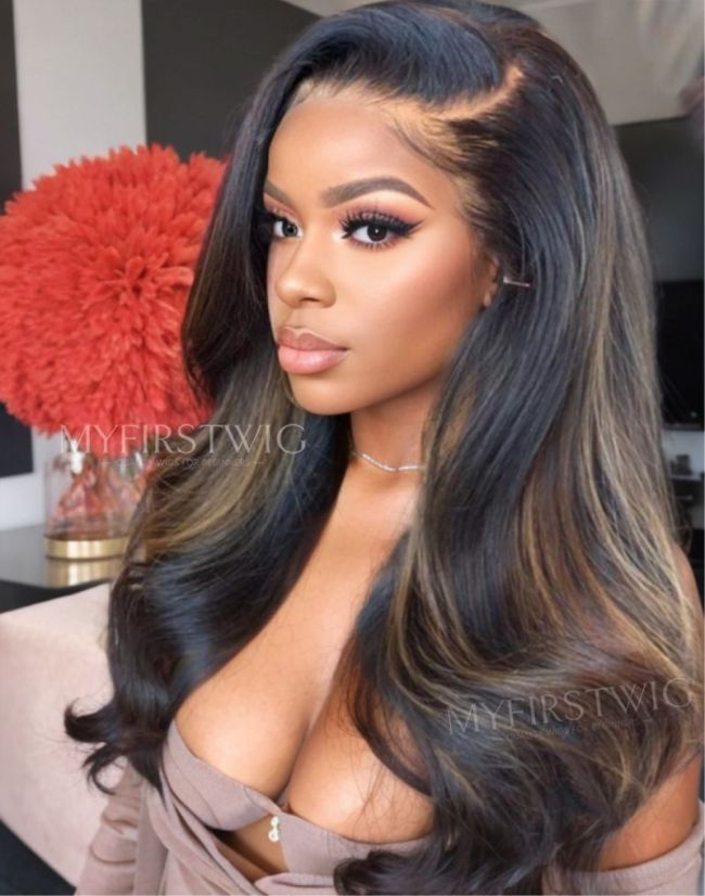 Highlight Brown Wavy Glueless Invisible Lace Front Wig - ANI8007