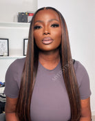 Highlight Dark Brown Yaki Straight Glueless Invisible Lace Front Wig - ANI8009