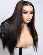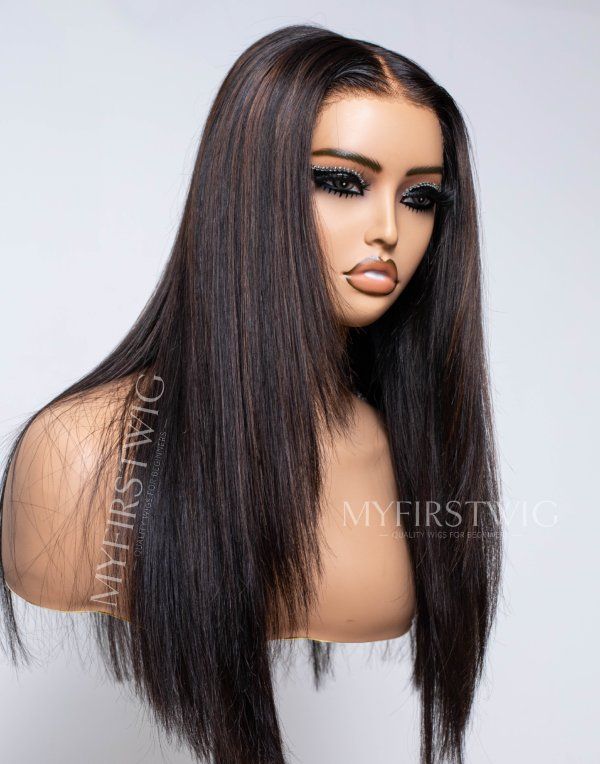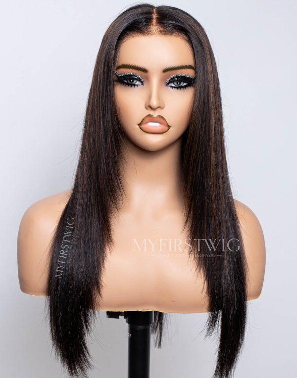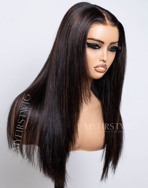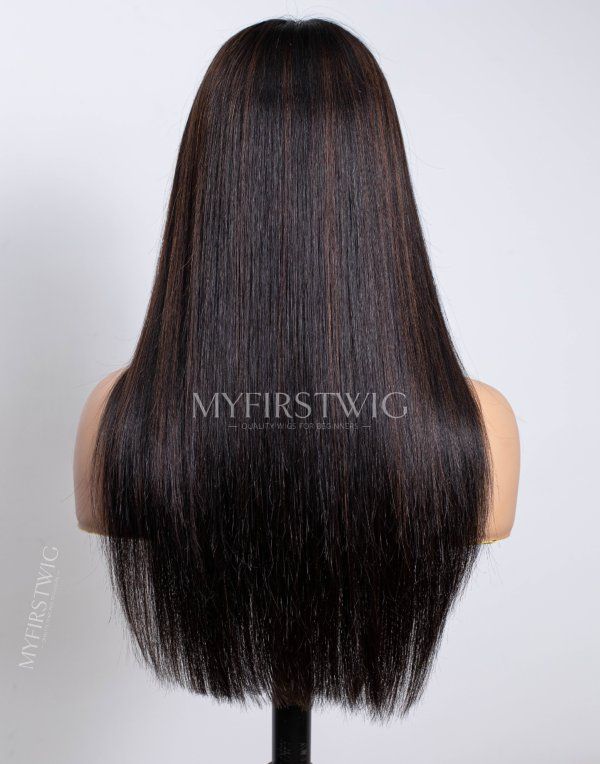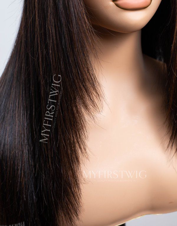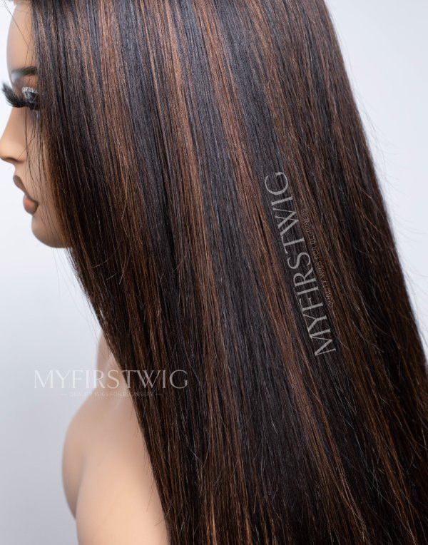 Layered Brown Highlight Straight Glueless Human Hair Invisible Lace Wig - APRIL003
