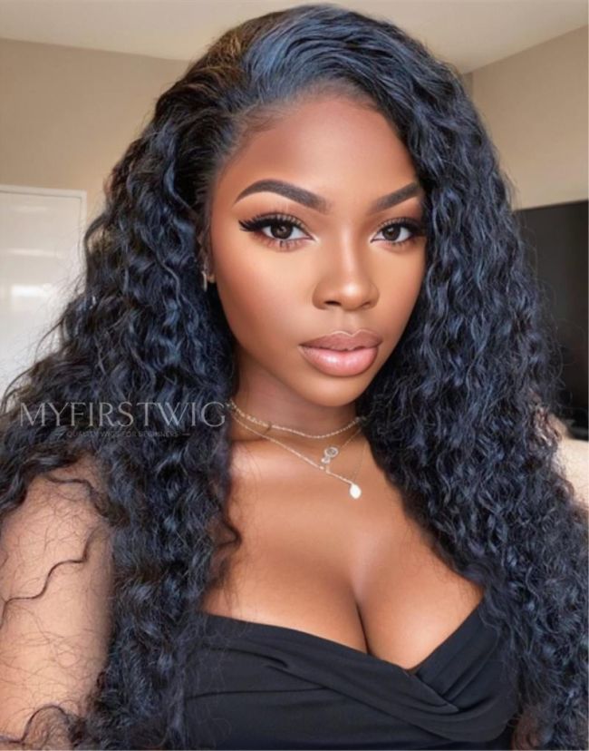 Long Deep Wave Curly Glueless Invisible Human Hair Lace Front Wig - ANI8006