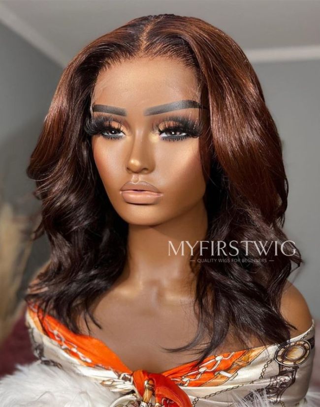OpHair - Auburn Brown Wavy Glueless Invisible Lace Front Wig - OPH024
