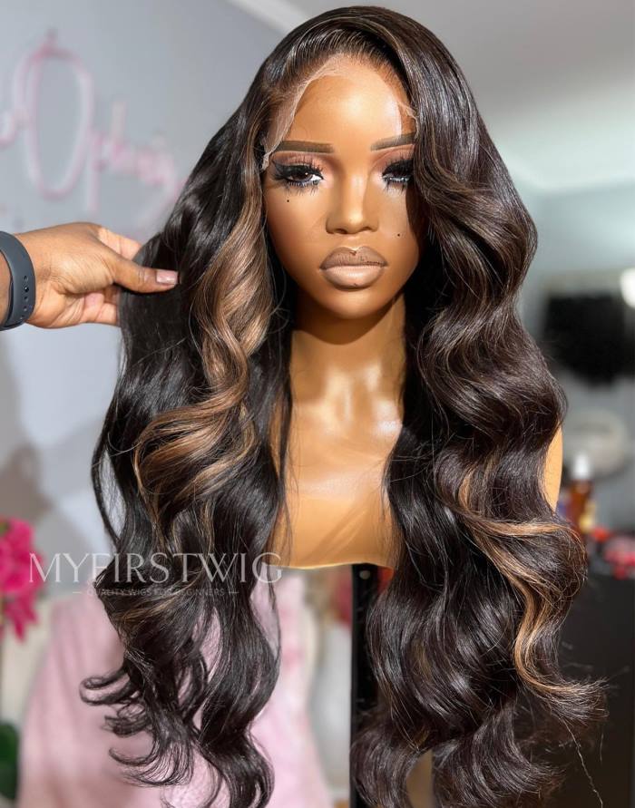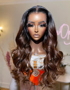 OpHair - Glueless Human Hair Lace Front Wigs Ombre Brown Wavy Wigs - OPH036
