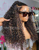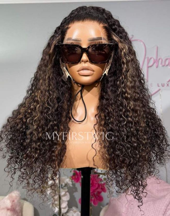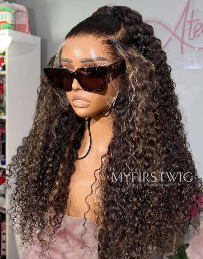 OpHair - Highlight Brown Curly Invisible Lace Glueless Human Hair Lace Front Wig- OPH018