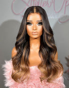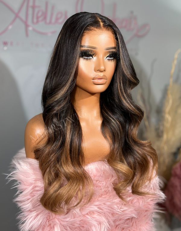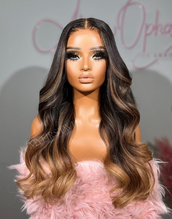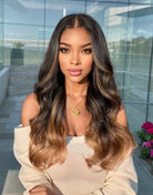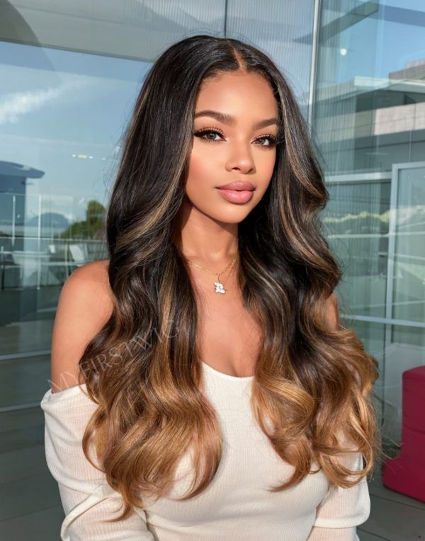 OpHair - Highlight Ombre Brown Wavy Glueless Invisible Lace Front Wig - OPH077