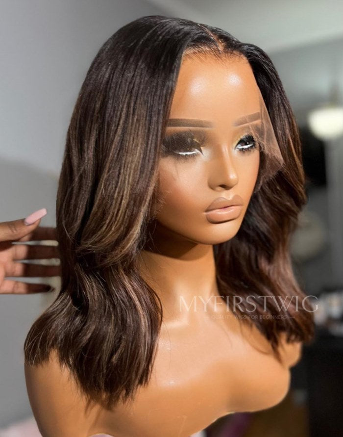 OpHair - Straight Brown Highlight Glueless Human Hair Invisible Lace Front Wig - OPH043