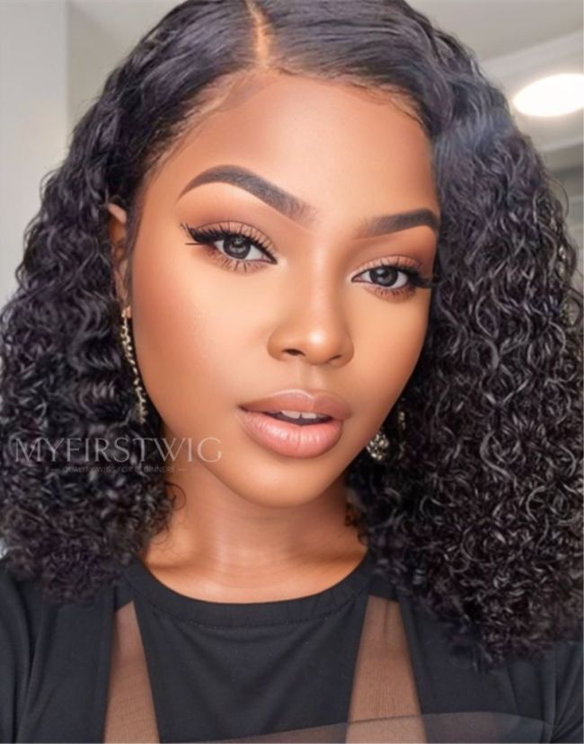 Short Deep Wave Curly Glueless Invisible Lace Front Wig - ANI8003