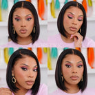 Side Part Yaki Bob Glueless Human Hair Invisible Lace Front Wigs - LFB055