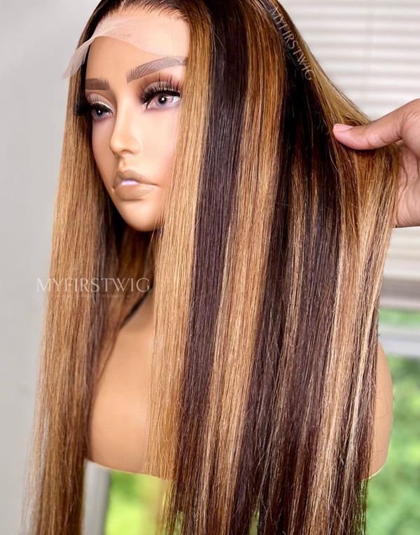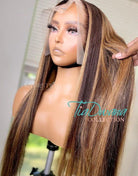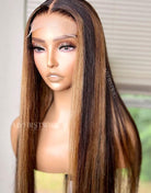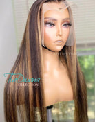 TiaDwana - Malaysian Human Hair Brown Highlight Straight Lace Front Wig - TDC002