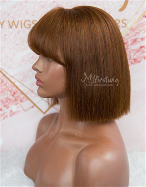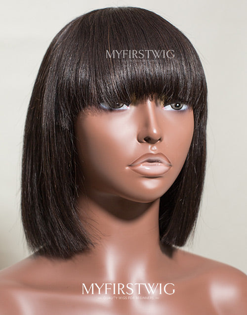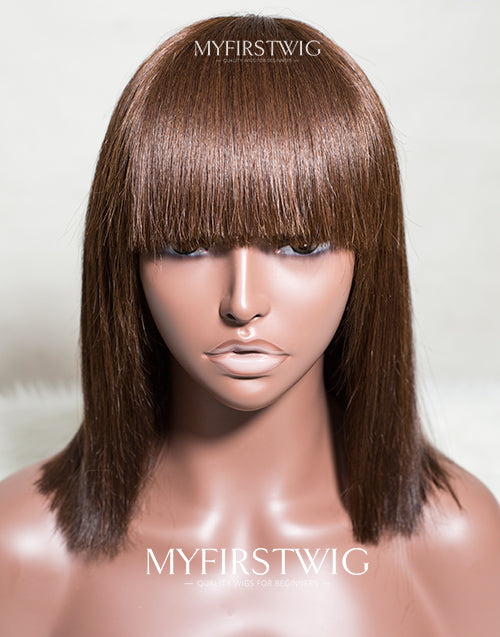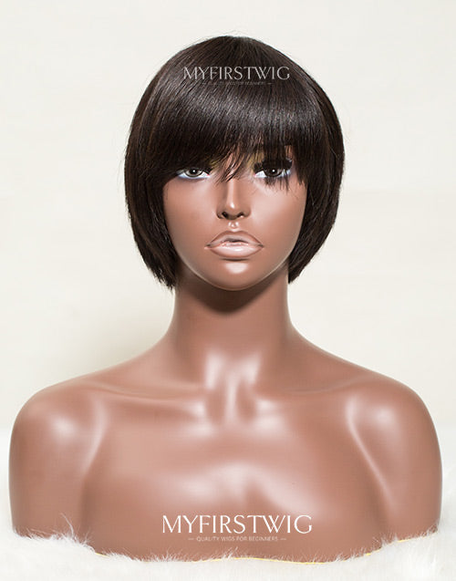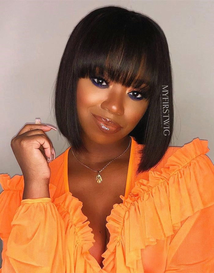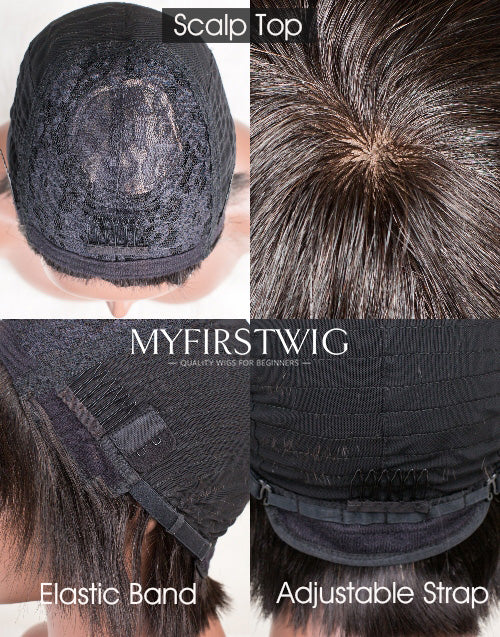 ● All the wigs from Myfirstwig are glueless wigs. The cap perfectly accommodates the shape of a real human head, guaranteeing a comfortable and natural fit. Internal combs and elastic bands inside eliminate the need for wig glue installation.