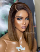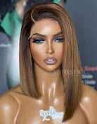 ASPECIALUNIT - Ombre Brown Asymmetric Straight Rich Auntie Lace Front Wig - SPE051
