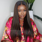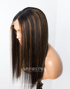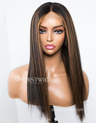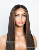 Touchedbyaye - Human Hair Straight Hair With Brown Highlight Lace Front Wig - LFS010