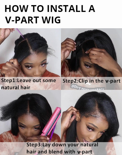 ● V Part Wig: It has a V-shaped parting in the front, which creates a natural-looking hairline. The V part can be positioned in the middle or on either side depending on personal preference. This type of wig allows for versatile styling and a realistic appearance, particularly suitable for those who prefer a distinct parting.
