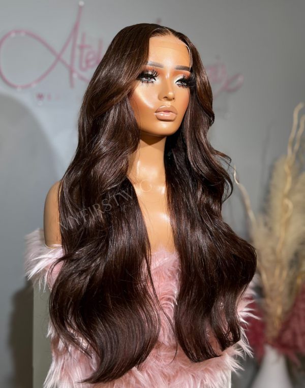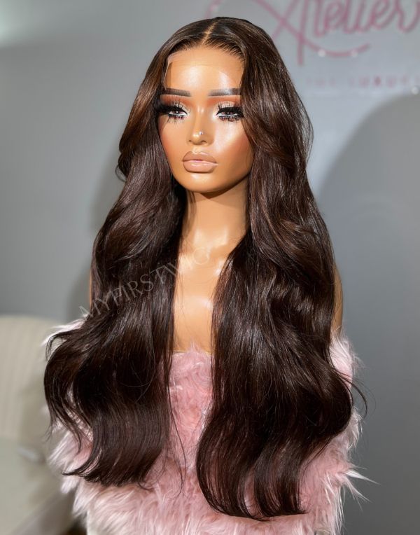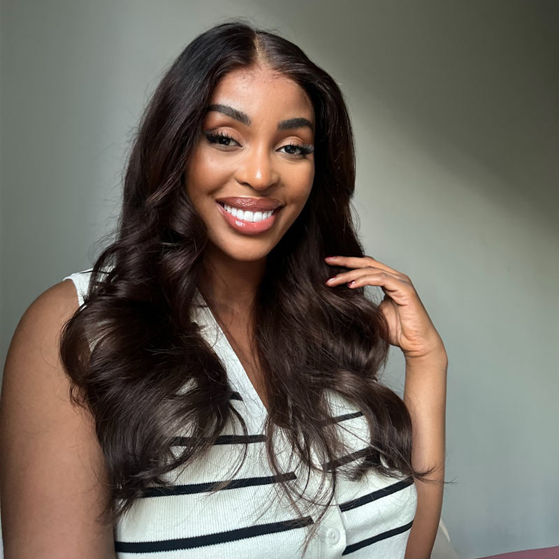 OpHair - Dark Brown Loose Wavy Glueless Human Hair Invisible Lace Wig - OPH078