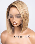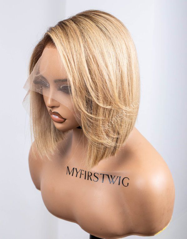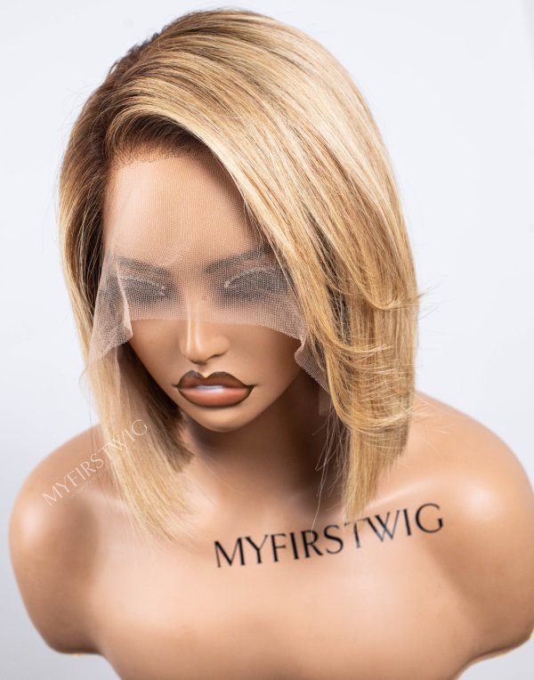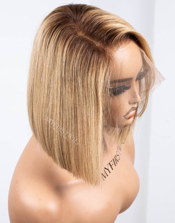 10-12 inches Blonde Side Part Bob Glueless Human Hair Invisible Lace Wig - April013