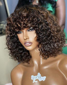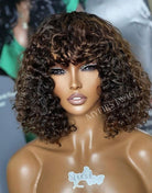 Aspecialunit-Malaysian Hair Highlight Curly Bob With Bangs Lace Front Wig - SPE015