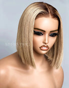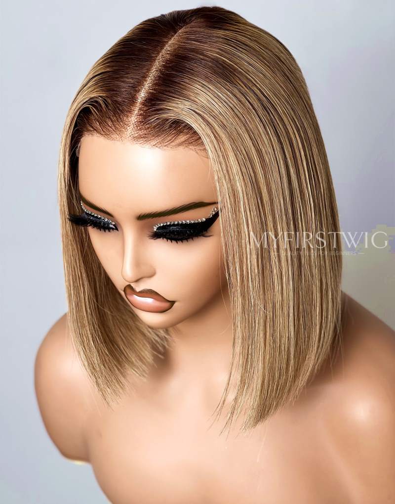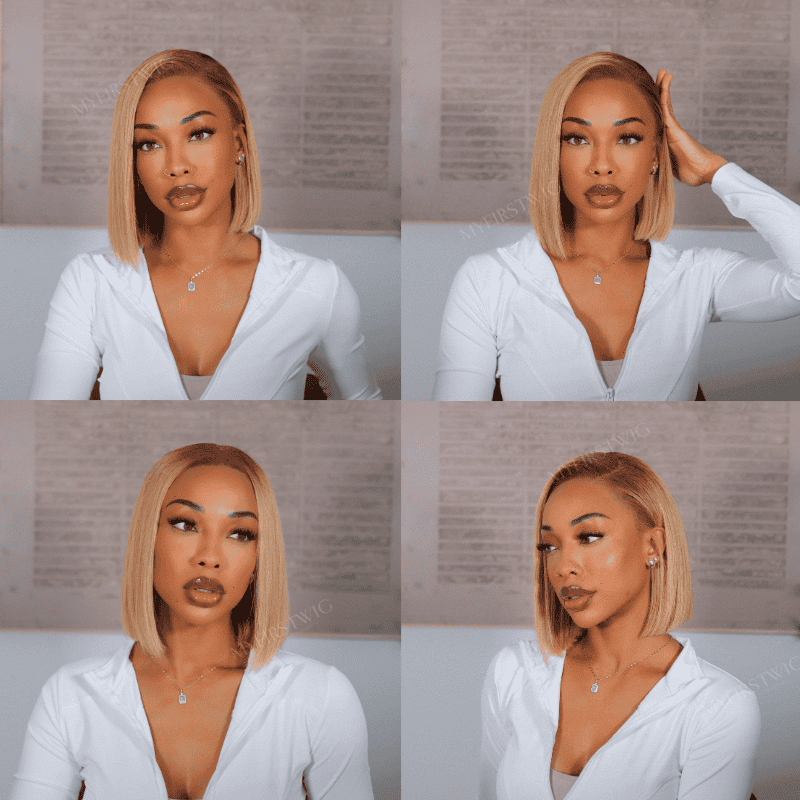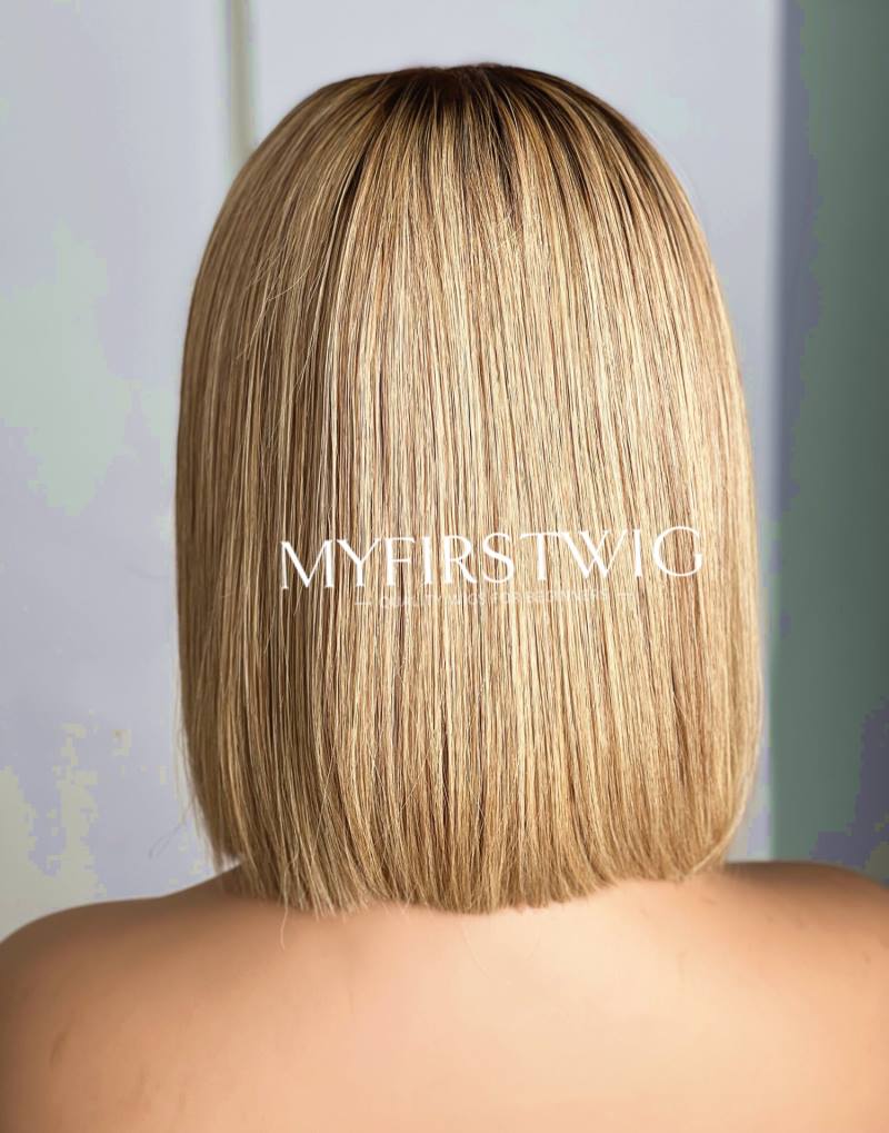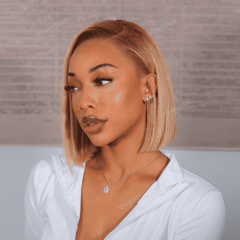 Blonde Blunt Cut Bob Glueless Human Hair Invisible Lace Wig April001