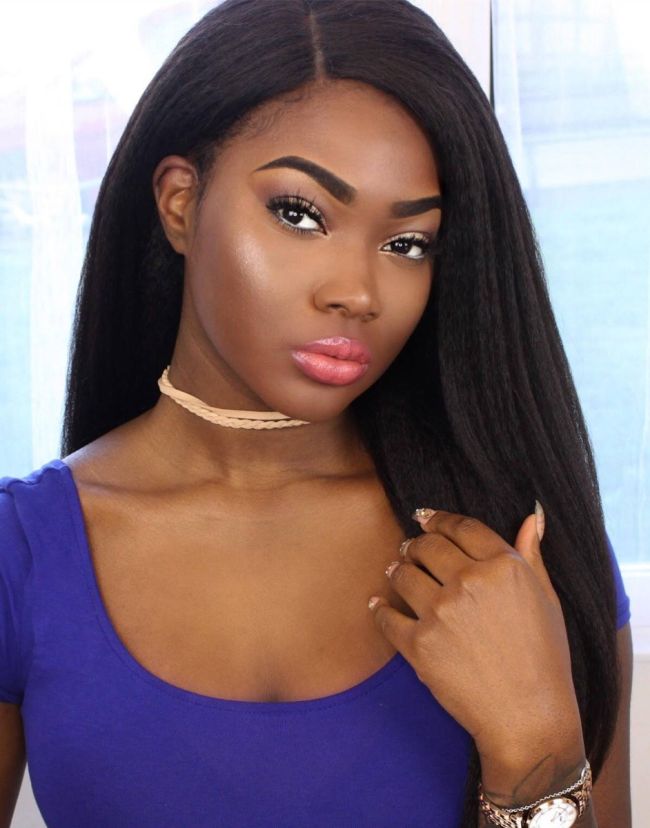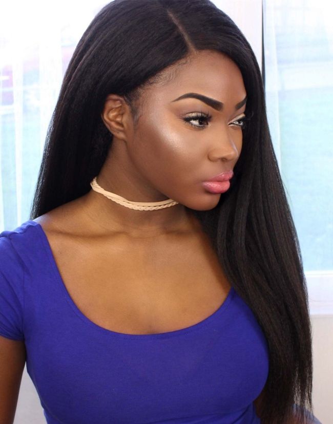 Doris - Kinky Straight Natural Texture Glueless Human Hair Invisible Lace Front Wig - LFW024