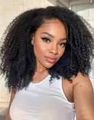 Kinky Curly Human Hair Glueless Invisible Lace Front Wig - LFC032