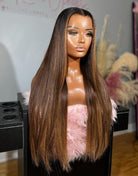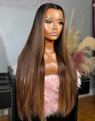 OpHair - Brown Highlight Human Hair Glueless Invisible Lace Front Wig - OPH095
