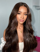 OpHair - Dark Brown Loose Wavy Glueless Human Hair Invisible Lace Wig - OPH078