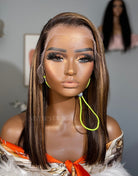 OpHair - Glueless Human Hair Lace Front Wigs Brown Highlight Straight Lob Wigs - OPH034
