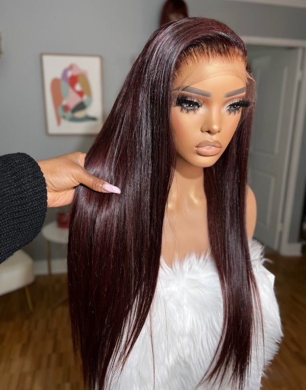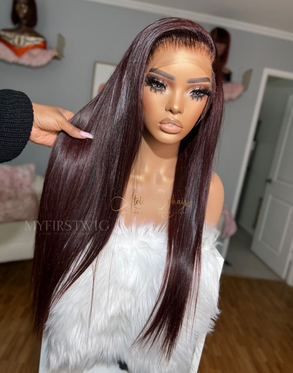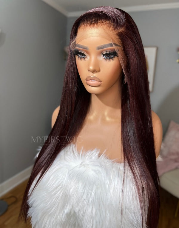 OpHair - Glueless Human Hair Lace Front Wigs Burgundy Straight Wigs - OPH032