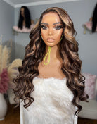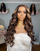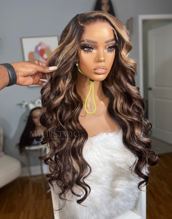 OpHair - Glueless Human Hair Lace Front Wigs Highlight Brown Wavy Wigs - OPH033