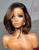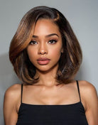 OpHair - Highlight Brown Side Part Bob Glueless Human Hair Invisible Lace Wig - OPH045