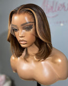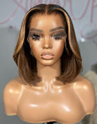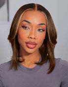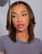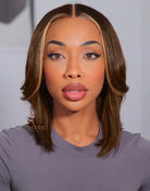 OpHair - Money Piece Blonde Brown Bob Human Hair Glueless Invisible Lace Front Wig - OPH097