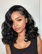 Shoulder Length Wavy Human Hair Glueless Invisible Lace Front Wig - TBA046