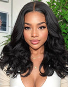 Shoulder Length Wavy Human Hair Glueless Invisible Lace Front Wig - TBA047