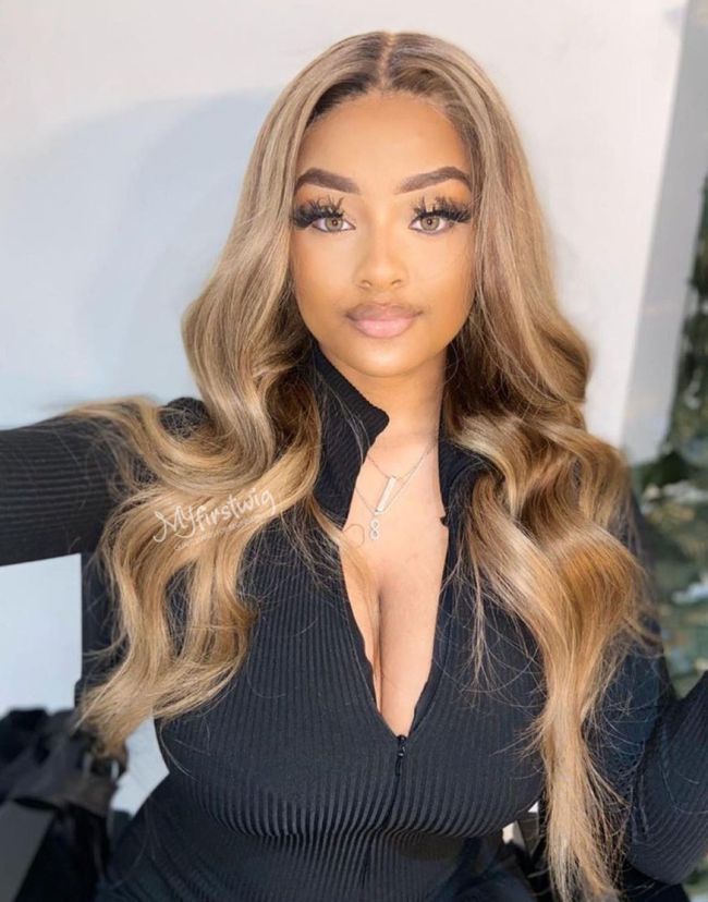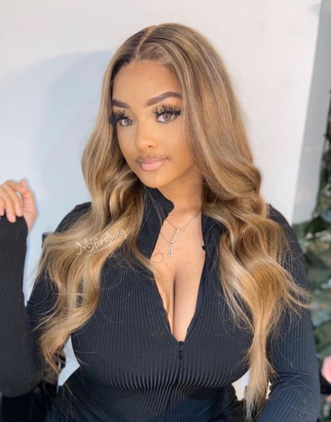 THECOLOURPLUG - Malaysian Virgin Hair Blonde Highlight Wavy Lace Wig - TCP005