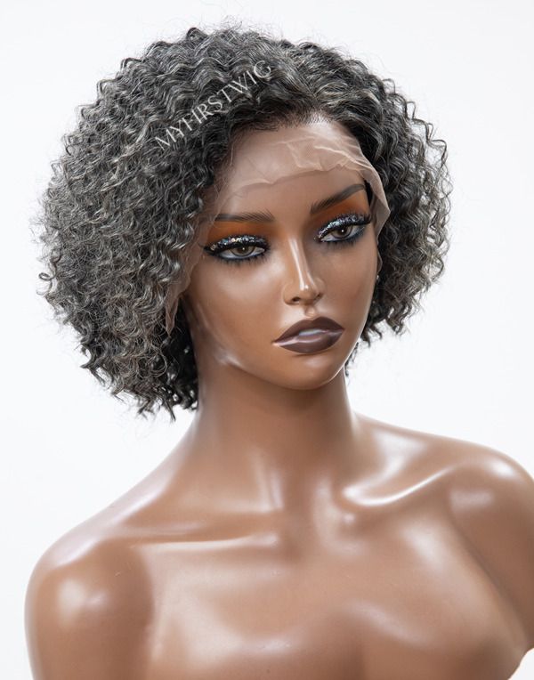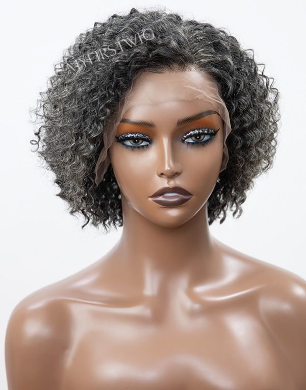 Touchedbyaye - Salt And Pepper Grey Short Curly Lace Front Wig - TBA029
