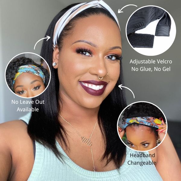 ● Is Headband Wig Glueless? Yes! All of our wigs are with Adjustable Strap & Drawstring ,so you don't need to use glue or gel to fix it tight for wearing.