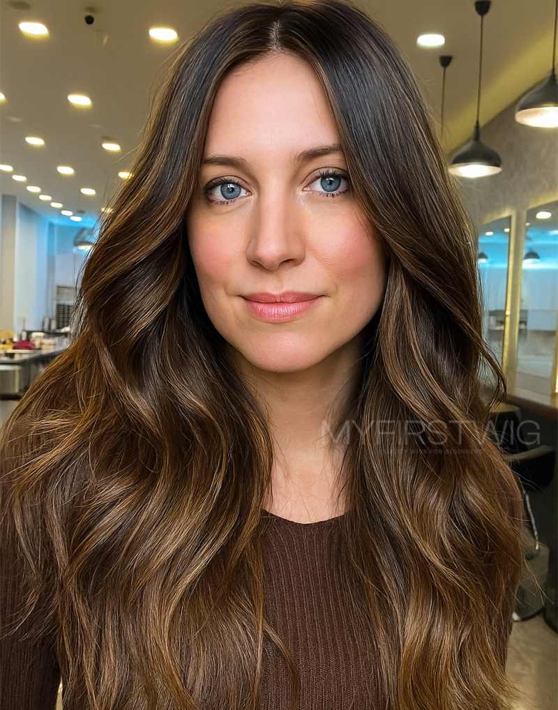 Wig For Hair Loss - Highlight Brown Wavy Human Hair Wig - WHLW003