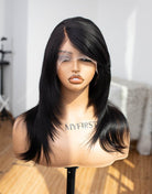 Yaki Straight High Layers With Bangs Fringe Glueless Invisible Human Hair Lace Front Wig - LFS026